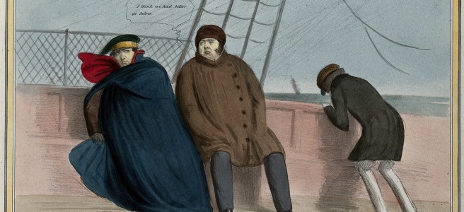 Cover Image: Lithograph by John Doyle. Lord Durham, the Governor-General of the British provinces in North America, sits beside E. Ellice on a ship as Turton vomits over the side, 1838. Wikimedia Commons.